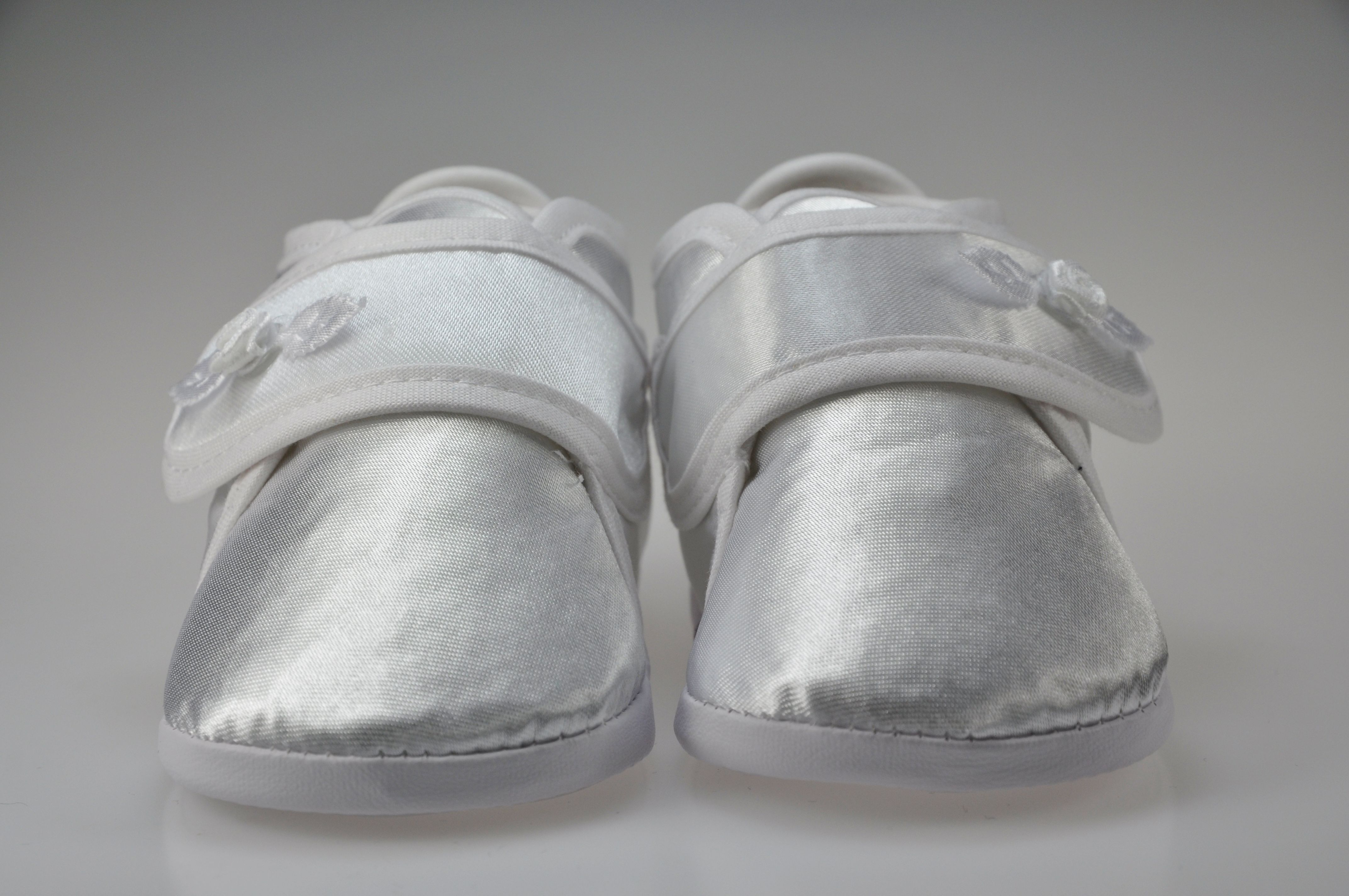 Buciki niemowlęce i dziecięce zapinane na rzep z ozdobą .
