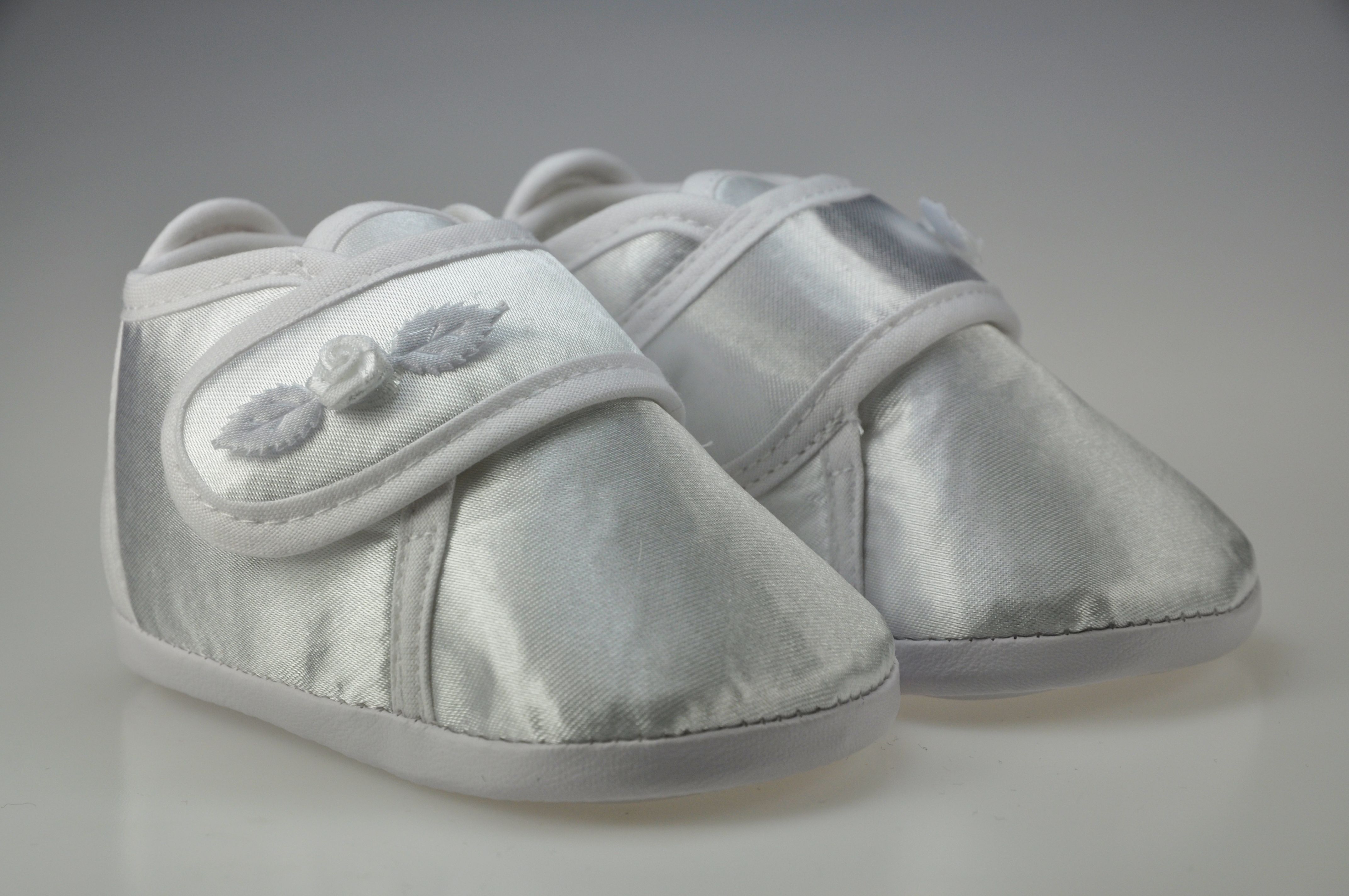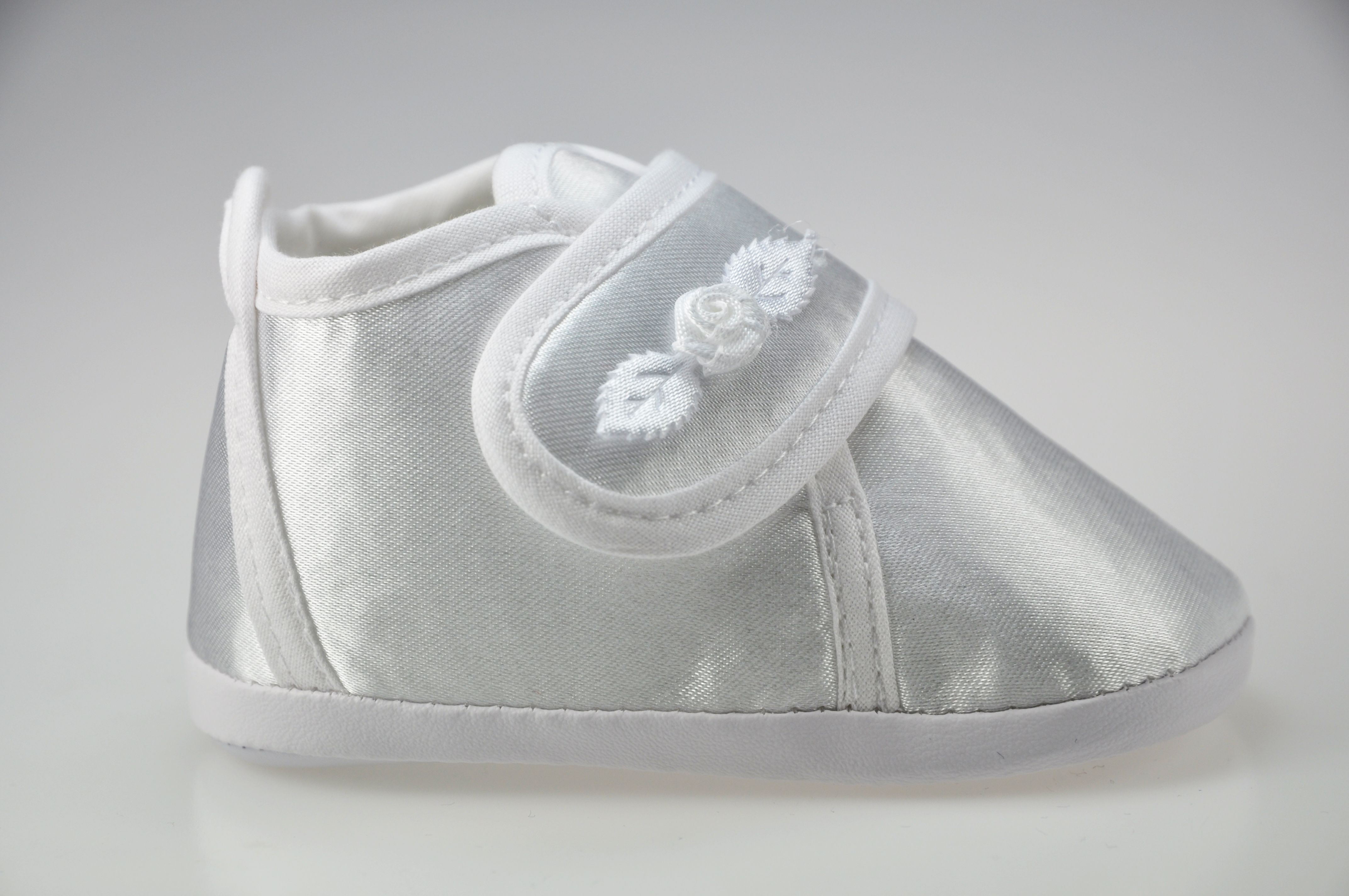 Buciki są bardzo delikatne i wygodne . Wysokie podbicie ułatwia wkładanie na nóżkę , a szeroka podeszwa nie krępuje ruchów paluszków stopy dziecka .