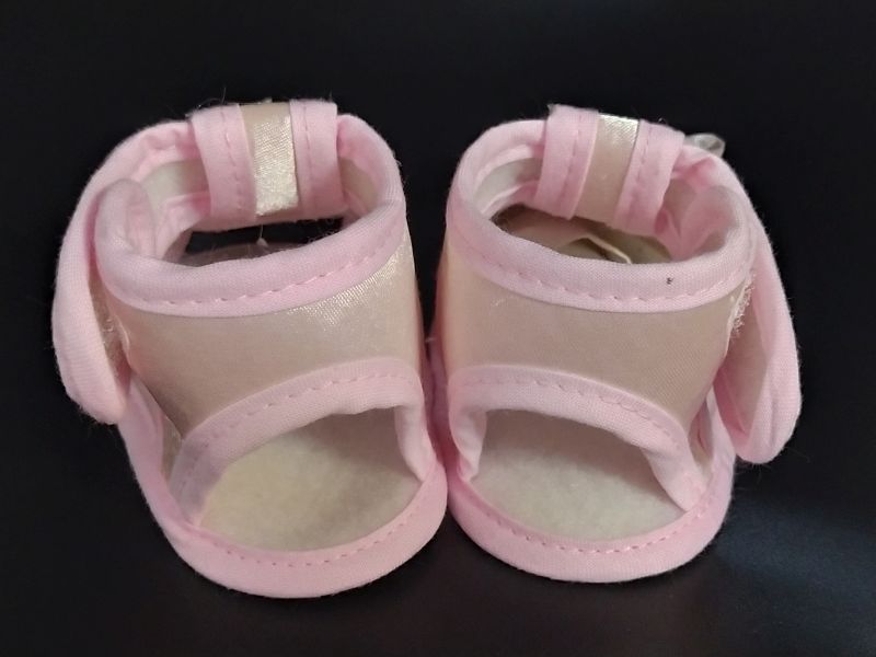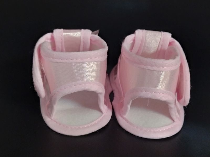Buciki są bardzo delikatne i wygodne . Wysokie podbicie ułatwia wkładanie na nóżkę , a szeroka podeszwa nie krępuje ruchów paluszków stopy dziecka .