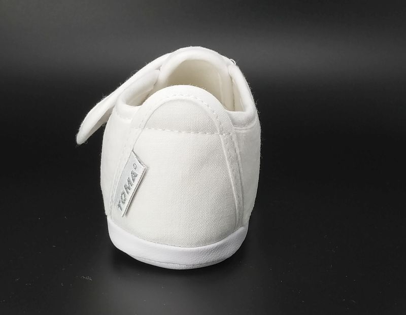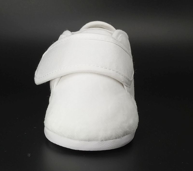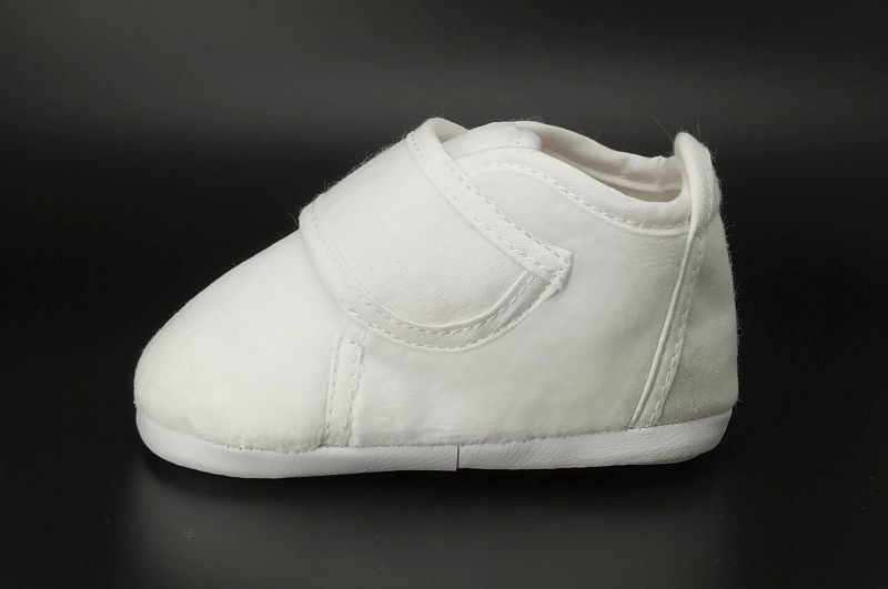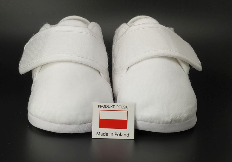 Buciki wykonane z białego weluru , zapinane na rzep .