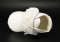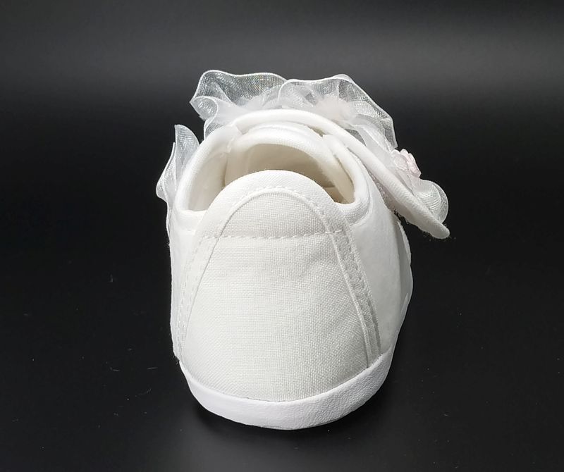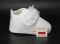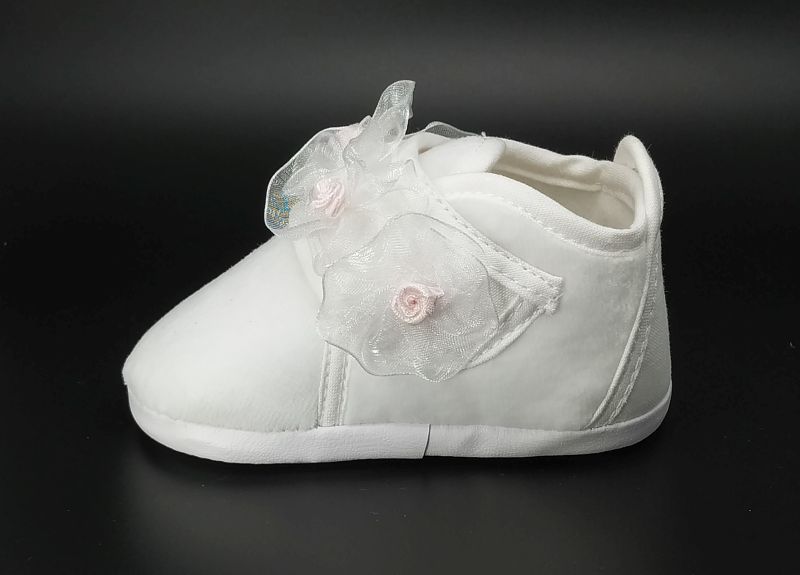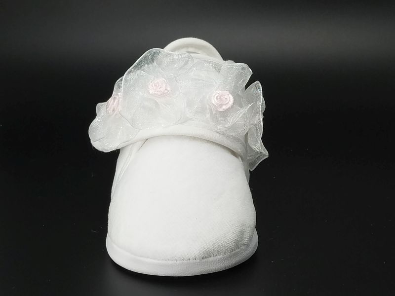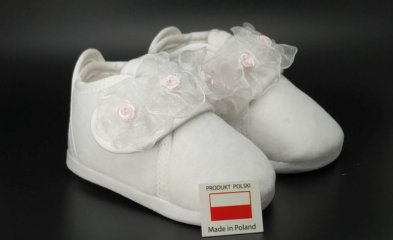 Buciki wykonane z białego weluru , zapinane na rzep z ozdobą.