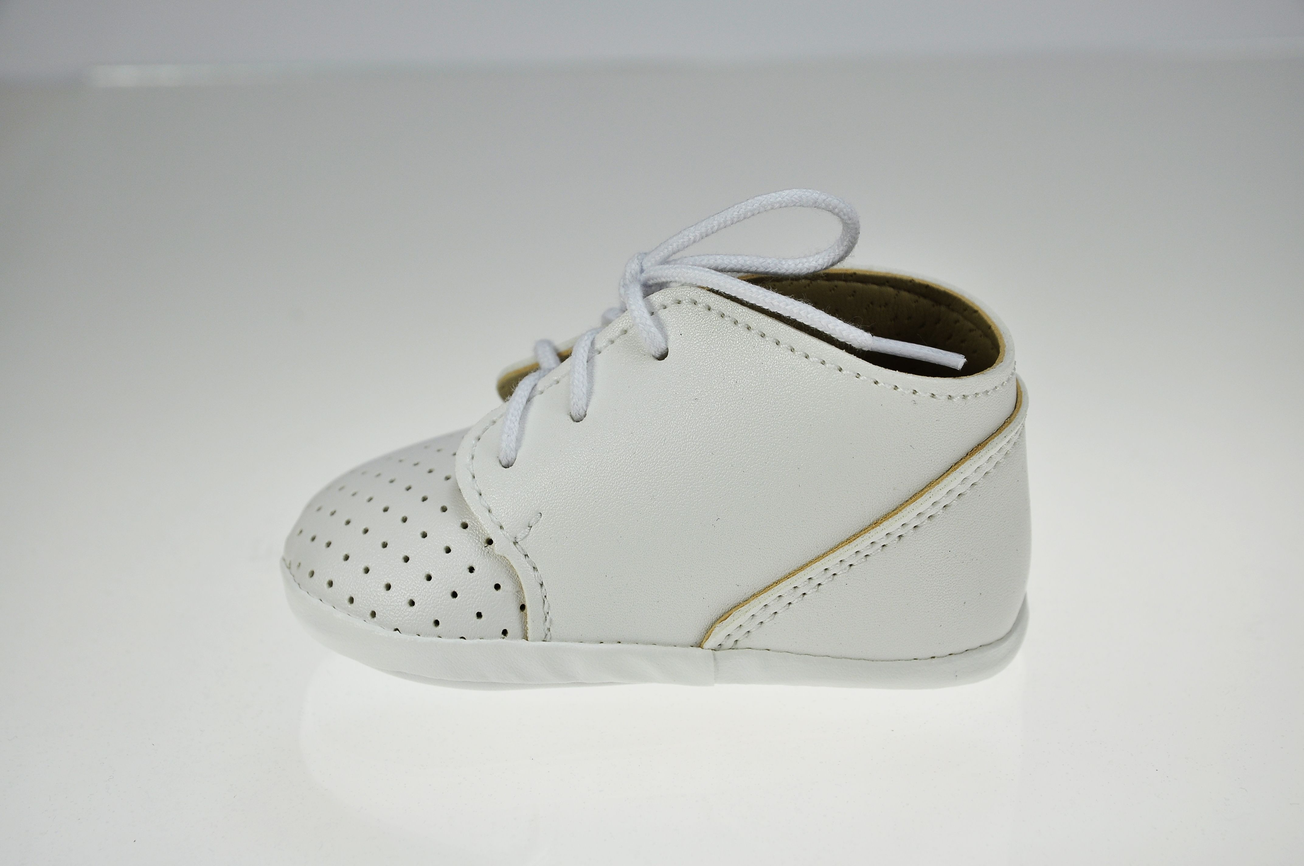Buciki są bardzo delikatne i wygodne . Wysokie podbicie ułatwia wkładanie na nóżkę , a szeroka podeszwa nie krępuje ruchów paluszków stopy dziecka .
