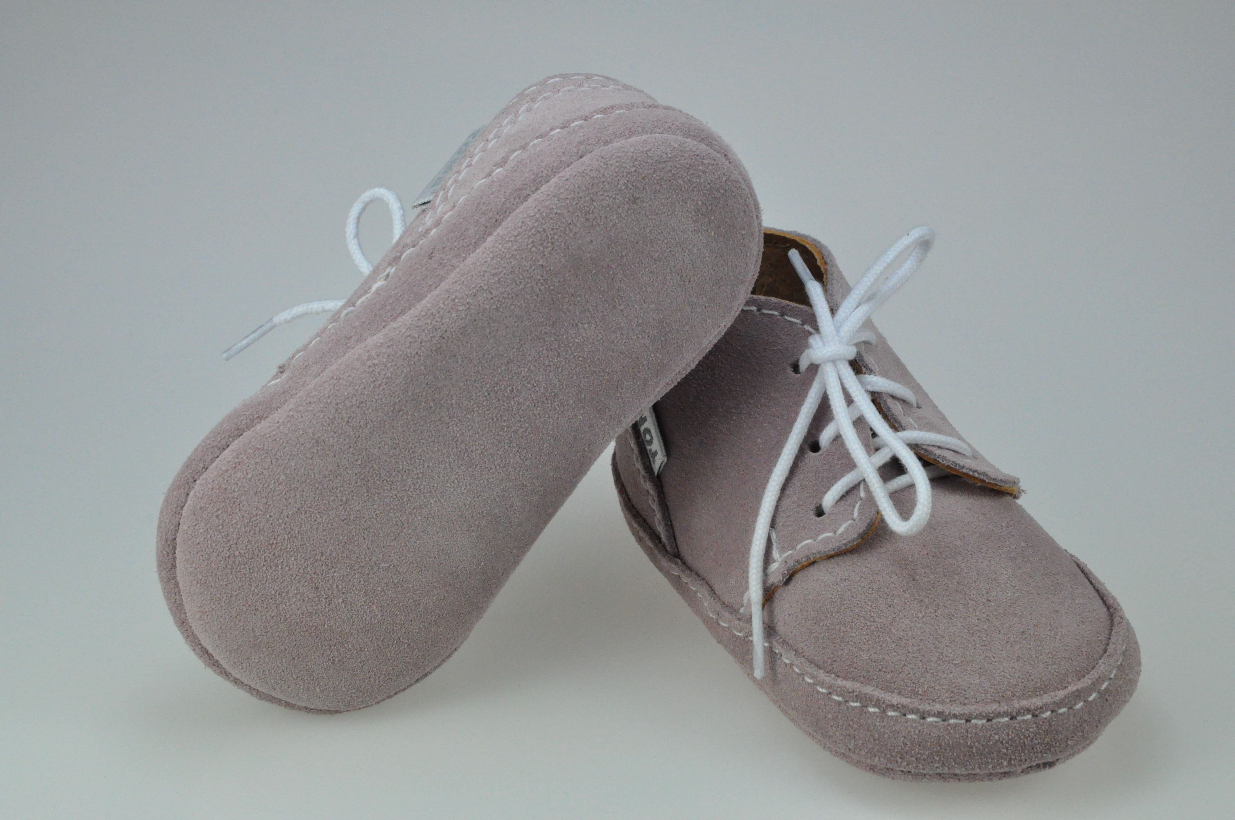 Buciki są bardzo delikatne , wysokie w podbiciu a szeroka podeszwa nie krępuje ruchów stopy dziecka .